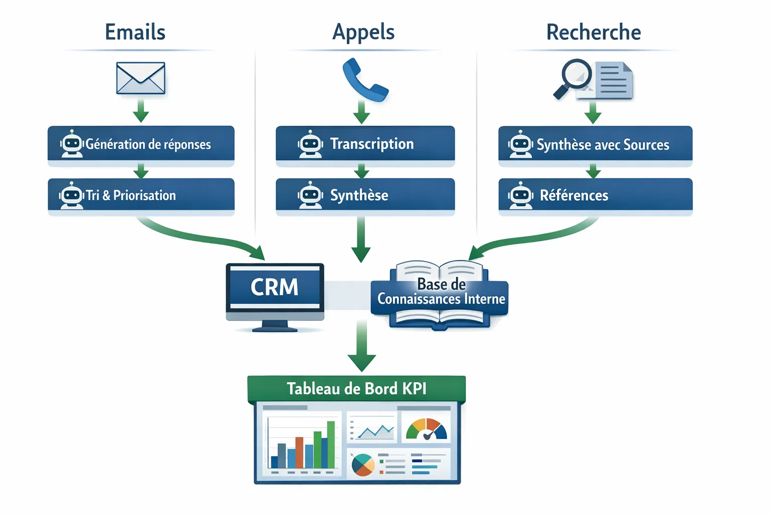 Most teams still spend a disproportionate part of their week managing emails, taking call notes, and searching for info. Good news: three categories of AI tools allow you to save hours without disrupting your stack: an intelligent call recorder, an AI-assisted email client, and an augmented search browser. Here is how to choose them, deploy them, and measure their impact in an SMB or scale-up.