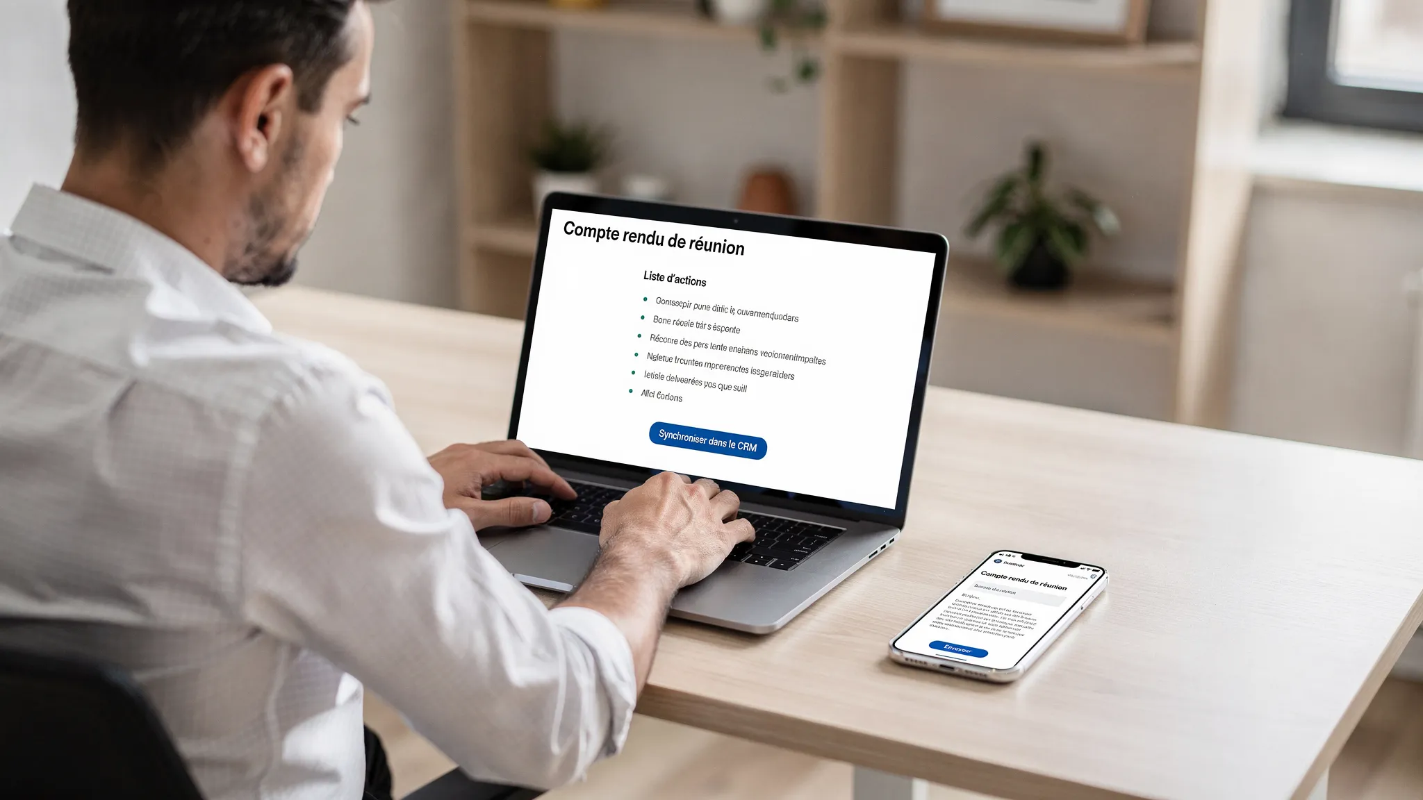What this category does. The tool connects to your meetings, records audio with consent, transcribes in near real-time, then generates structured minutes, follow-up actions, and sometimes a recap email draft. The goal is not to replace active listening, but to eliminate manual note-taking and industrialize knowledge capitalization.